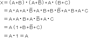 (2)論理関数Xは、ブール代数の公式等を利用して簡単にすると次のようになります。