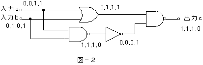 出力c、1,1,1,0は、否定論理積です。