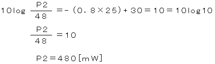 (1) 電気通信回線への入力電力をP1、増幅器の出力電力をP2、線路の伝送損失をL、増幅器の利得をGとしP2を求めると、