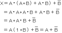 (2)論理式を論理代数の公式を用いて簡単にすると、次のようになります。