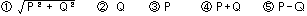 (4) 正弦波交流の流れる回路において、有効電力をPワット及び無効電力をQバールとすると、力率は、