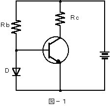 (2) 図に示すバイアス回路のトランジスタ回路では、温度が上昇するとトランジスタの特性が変化してコレクタ電流が増加しようとするが、 温度補償用ダイオードDの順方向電圧が( イ )ので、コレクタ電流は一定に保たれる。