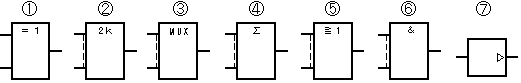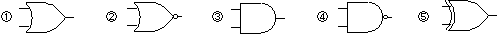 (1)JIS X 0122(2値論理素子図記号)において、論理和(OR)素子を表す図記号は、( ア )である。
