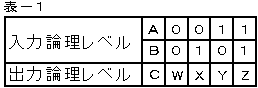 で表されるとき、表中の出力論理レベルW、X、Y、Zはそれぞれ( イ )である。