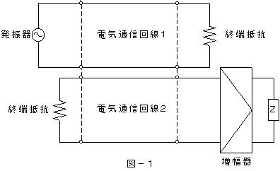 (1)図−1において、電気通信回線1への入力電圧が180ミリボルト、電気通信回線1から電気通信回線2への遠端漏話減衰量が60デシベル、増幅器の利得が20デシベルのとき、インピーダンスに加わる電圧は、( ア )ミリボルトである。ただし、入出力各部のインピーダンスはすべて同一値で整合しているものとする。