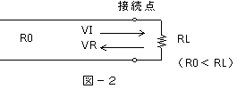 (3)図−2において、特性インピーダンスがR0(純抵抗)である線路に負荷抵抗RL(純抵抗)を接続して終端するとき、R0≠RLであれば接続点で信号の反射が生じる。R0<RLの場合には、接続点において入射する信号電圧をVIと反射される電圧VRを比較すると、VIとVRは( ウ )である。