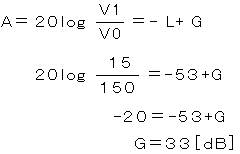 電気通信回線1への入力電圧がV0、インピーダンスZに加わる電圧をV1、遠端漏話減衰量をL、増幅器の利得をGとすると、電気通信回線全体の伝送量Aは、次のようになります。