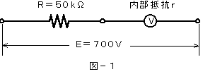 )キロオームの電圧計Vに、50キロオームの抵抗Rを直列に接続すると、最大700ボルトの電圧を測定できる。