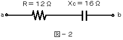 (2)図−2に示す回路において、交流電流が4アンペア流れているとき、この回路の端子a−b間の電圧は、(