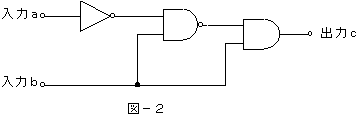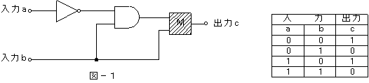 (4)図−2の論理回路において、入力a及び入力bの論理レベルと出力cの論理レベルとの関係から、(