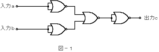 (1) 図−1の論理回路は、入力a及び入力bの論理レベルと出力cの論理レベルとの関係から、( ア )の回路に置き換えることができる。