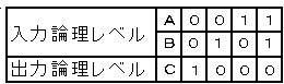 (4)表は、入力論理レベルA及びBと出力論理レベルCとの関係を示した真理値表である。この真理値表に相当する論理式は、(
