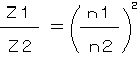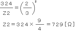 (3)変成器において反射損失がゼロとなるときの1次側及び2次側のインピーダンスをZ1、Z2、変成器の巻線比をn1、n2とすると次のようになります。
