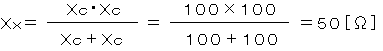 (2) コンデンサXcの並列部分の合成リアクタンスをXxとすれば、