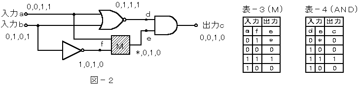 AND回路は、両方の入力が「1」のときのみ出力が「1」になります。これを利用すると、入力0,1,1,1と出力0,0,1,0よりもう片方の入力は*,0,1,0(*は「0」か「1」)になります。