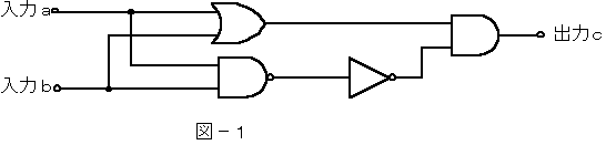 (1) 図−1の論理回路は、入力a及び入力bの論理レベルと出力cの論理レベルとの関係から、( ア )の回路に置き換えることができる。