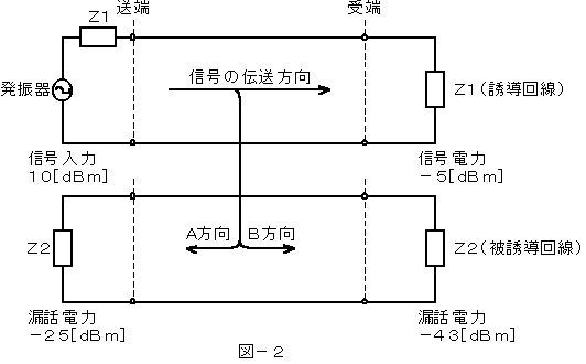 (3) 図−2において、B方向における漏話減衰量は( ウ )デシベルである。