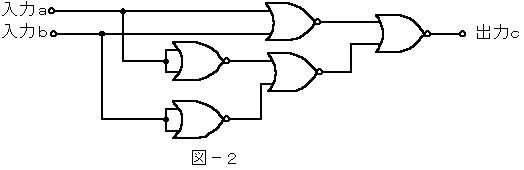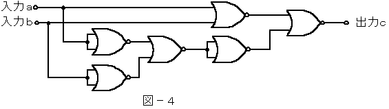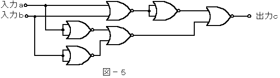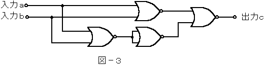 (3)図−2〜図−5の論理回路において、入力a及び入力bの論理レベル(それぞれA及びB)と出力cの論理レベル(C)との関係が、