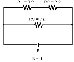 (1)図−1に示す回路において、抵抗R1に加わる電圧が21ボルトのとき、抵抗R3に流れる電流は、(
