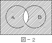 (4)図−2に示すベン図において、AとBは、それぞれの円の内部を表すとき、塗りつぶした部分を示す論理式は、(