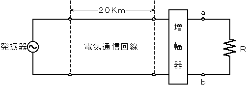 ア )デシベル、増幅器の利得が30デシベルのとき、端子a−bでの受信レベルは、−3デシベルである。ただし、入出力各部のインピーダンスは整合しているものとする。