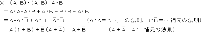 (2)論理関数Xは、ブール代数の公式等を利用して簡単にすると次のようになります。