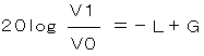 電気通信回線への入力電圧をV0、変成器の入力電圧をV2、伝送損失をL、増幅器の利得をGとすると次のようになります。