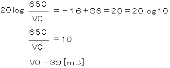 この式にV1=650、L=16、G=36を代入してV0を求めると、