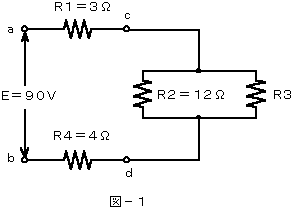 (1)図−1に示す回路において、端子c−d間の電圧が48ボルトのとき、抵抗R3は、( ア )オームである。 (5点)