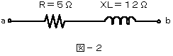 (2)図−2に示す回路において、交流電流が4アンペア流れているとき、この回路の端子a−b間に現れる電圧は、( イ )ボルトである。 (5点)