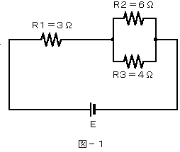 (1)図−1に示す回路において、抵抗R1に加わる電圧が15ボルトのとき、抵抗R3で消費する電力は、( ア )ワットである。   (5点)