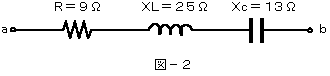 (2)図−2に示す回路において、端子a−b間に交流電圧60ボルトを加えたとき、この回路に流れる電流は、( イ )アンペアである。    (5点)