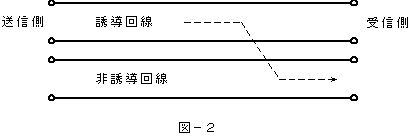 (2)通信線路における漏話のうち、図−2の----->で示す方向に現れる漏話は、( イ )漏話といわれる。  (5点)