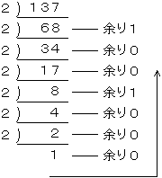 (1)10進数を2進数に変換する場合は、10進数を2で割りその余りを下から順に並べることにより求めることができます。
