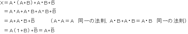 (2)論理関数Xは、ブール代数の公式等を利用して簡単にすると次のようになります。