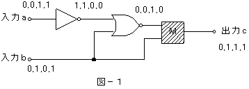 NOR回路の出力は。入力1,1,0,0と0,1,0,1より、0,0,1,0になります。