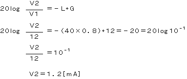 (1) 電気通信回線への入力電圧をV1、電圧計の読みをV2,伝送損失をL、増幅器の利得をGとしV2を求めると、