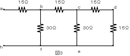 図3の回路において、a−h間の合成抵抗を求めよ。