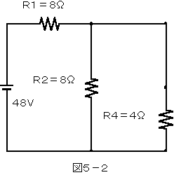 (R3+R4=8[Ω]、R2=8[Ω]抵抗値が同じなため)