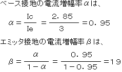 ベース電流Ib=Ie−Ic=1−0.98=0.02[mA]