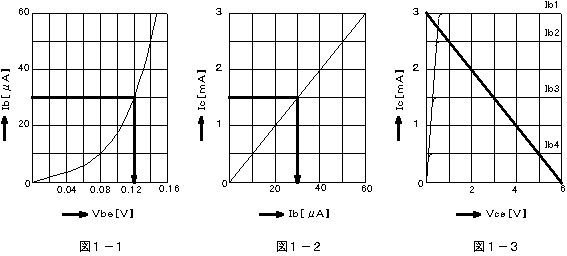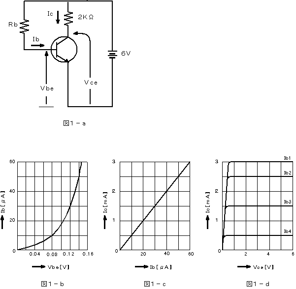 図1−aに示すトランジスタ回路において、Ib−Vbe特性、Ic−Ib特性及び