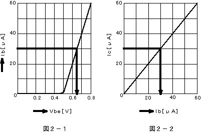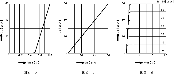 図2−aに示す回路において、トランジスタのIb−Vbe特性、Ic−Ib特性及び