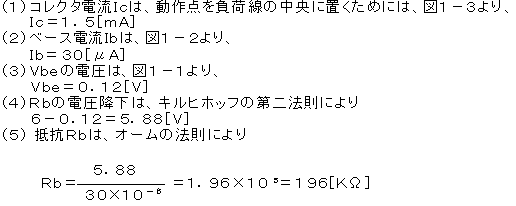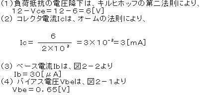 Icが2.85[mA]のとき、このトランジスタ回路をエミッタ接地形とした場合の電流増幅度βを求めよ。