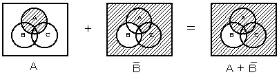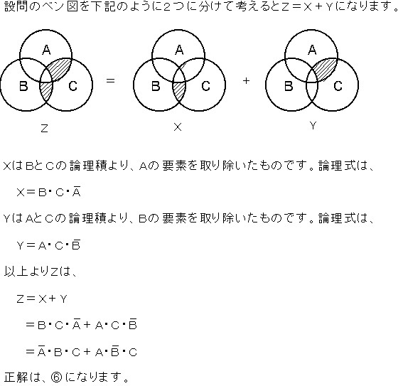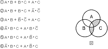 図は、論理式を直観的な形で説明するベン図である。図の網掛けを施した部分を示す