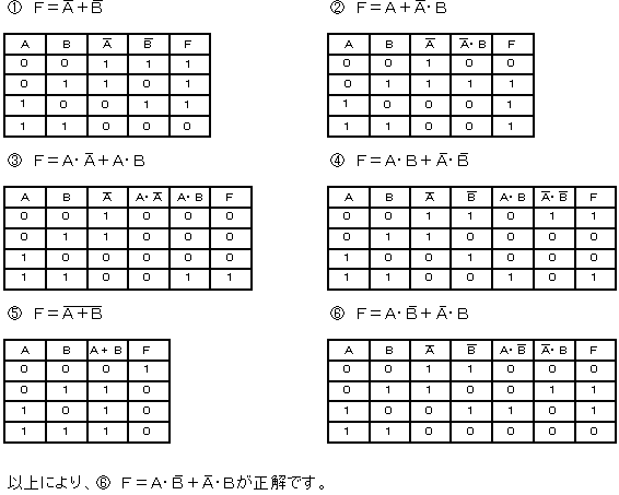 表は、入力論理レベルA及びBと出力論理レベルFとの関係を示した真理値表である。