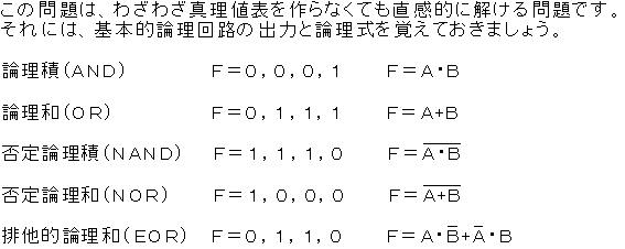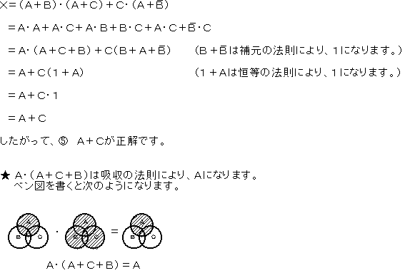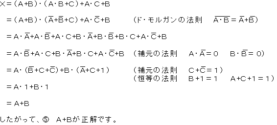 次の論理式Xは、ブール代数の公式等を利用して変形すると簡単にすることができます。