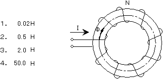 〔No. 2〕 図に示す巻数Nのコイルに電流I〔A〕を流したとき、磁束Φ〔Wb〕が発生した。このコイルの自己インダクタンスL〔H〕の値として正しいものはどれか。