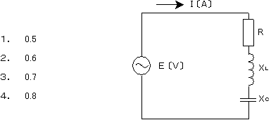 〔No. 3〕 図に示す回路に、交流電圧を印加したときの力率の値として、正しいものはどれか。