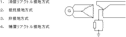 〔No.14〕 次の図に示す架空送配電線路の中性点接地方式として、適当なものはどれか。