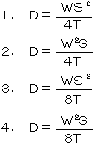〔No.15〕 架空送配電線路のたるみD〔m〕を表す近似計算式として、正しいものはどれか。